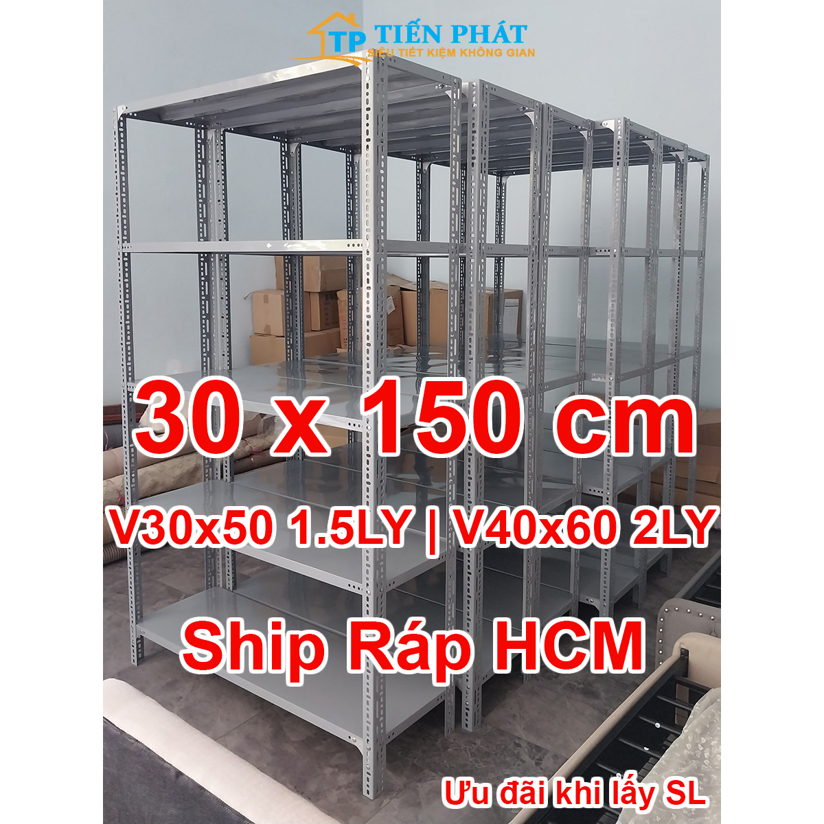 KỆ SẮT V LỖ ĐA NĂNG 3-4-5-6 MÂM DÀI 1.5M X RỘNG 0.3M - CAO NHIỀU KÍCH THƯỚT